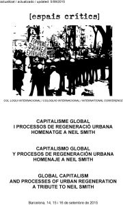 Entre los días 14 y 16 de septiembre de 2015, Núria Benach y Abel Albet, responsables del Grupo Espais Crítics, organizaron en Barcelona el Coloquio Internacional “Capitalismo global y procesos de regeneración urbana. Homenaje a Neil Smith”. Celebrado en el Auditorio Meier del Museu d’Art Contemporani de Barcelona (MACBA), el evento contó con la participación del alrededor de 200 personas representantes de distintos países de Europa, Asia y América Latina, con trayectorias diferentes tanto en la academia como en el activismo.