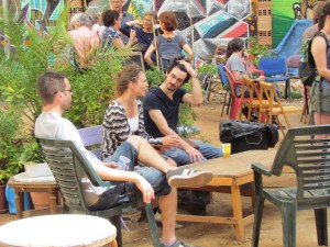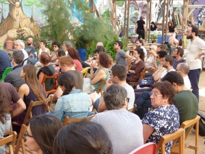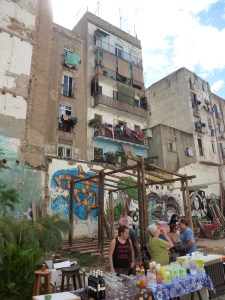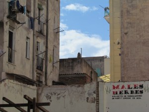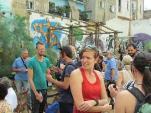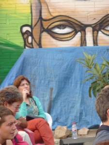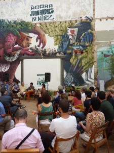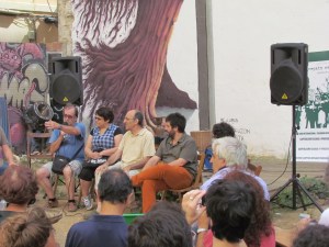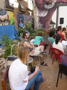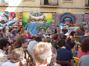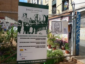 El último día del Coloquio se dedicó a realizar una serie de recorridos por el Raval, a fin de reconocer las distintas operaciones inmobiliarias y de regeneración urbana que están teniendo lugar en este barrio de Barcelona desde la década de 1980 hasta la actualidad. Todos los recorridos confluyeron en el Ágora Juan Andrés Benítez, solar ocupado por distintos colectivos que defienden el derecho de permanencia de los vecinos en este ámbito de la ciudad. A la vez que buscan evitar el avance del capital inmobiliario y turístico en él área, ellos promueven el uso público de este solar. La conversación con algunos miembros de estos movimientos giró en torno a su lectura de algunas dinámicas que tienen lugar en el Raval hoy, como los procesos de gentrificación, la persecución de la prostitución y la relación con los migrantes que se han instalado en el barrio.