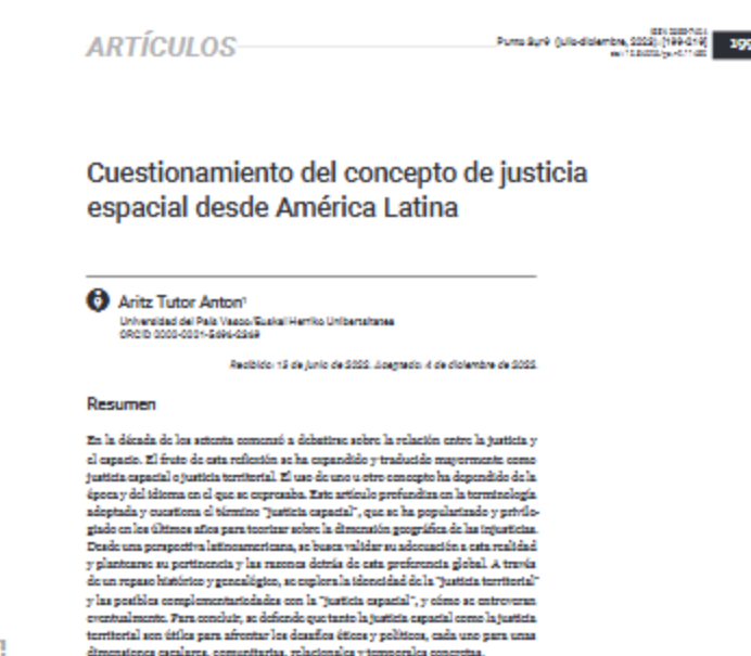 Monográfico «La justicia espacial desde América Latina«, editado por Aritz Tutor